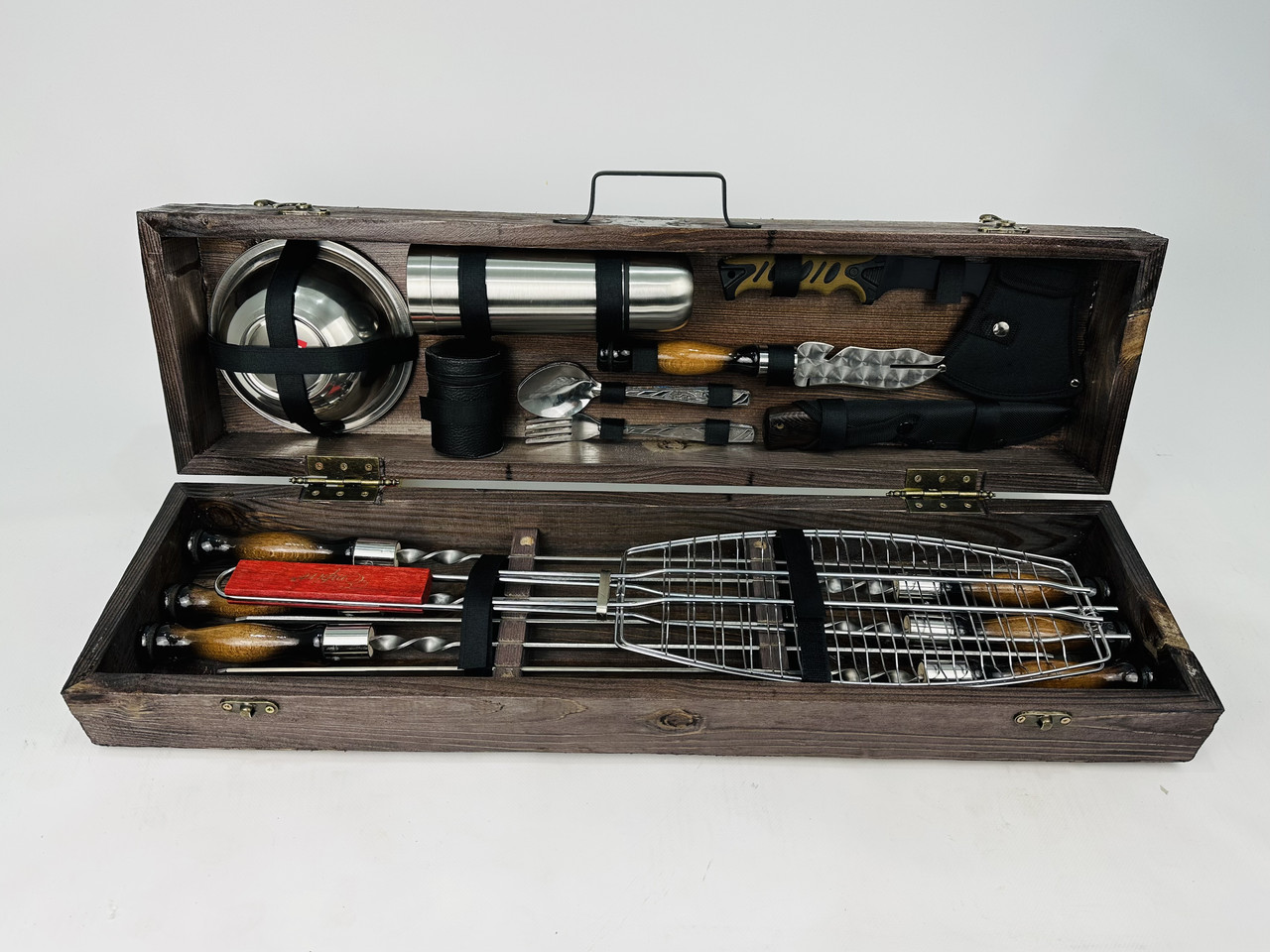 Ми виконуємо гравіювання різної складності на кейсах подарункових наборів шампурів.